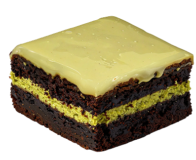 Our first-ever stuffed brownie! Fudgy chocolate outside, pistachio + kataifi filling inside. Worth every second of the wait!